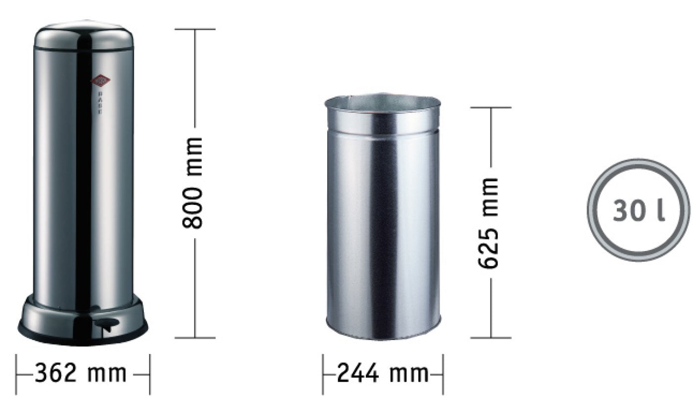 Classic design in professional quality. With 30 l capacity ideal for gastronomy. With an extremely steady base and a robust pedal mechanism.