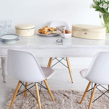 The ventilation holes at the back allow optimal air circulation. The sturdy metal hinges guarantee perfect stability. The breadbox Elly offers a lot of space, housing everything from a large loaf of bread to rolls, cakes or pastries.