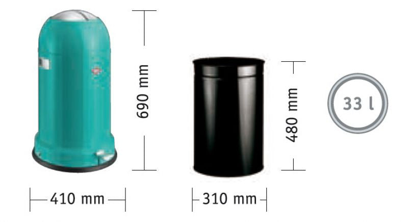 Wesco's classic design in a fresh new look with an especially stable retro-style base. As an innovative new feature, the integrated damper ensures almost soundless closing of the lid flaps. The hygienic 33-litre plastic insert is particularly easy to clean. With anti-slip bottom ring.