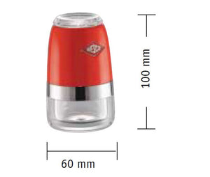 The medium-sized spice grinder can be used for salt, pepper, dried herbs, spice blends etc. With its height of just 10 cm it is very easy to handle.
