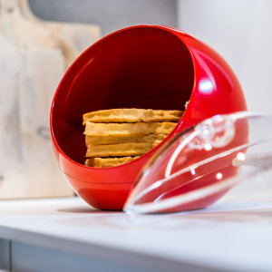 The next generation of storage container - straight from outer space to your table! This spacious metal sphere offers room for all kinds of items that need to be stored in a hygienically and visually stylish way, sweets and biscuits, coffee capsules or even desk accessories. The Spacy Ball is sealed with a transparent acrylic disc which can be removed in a single hand movement.